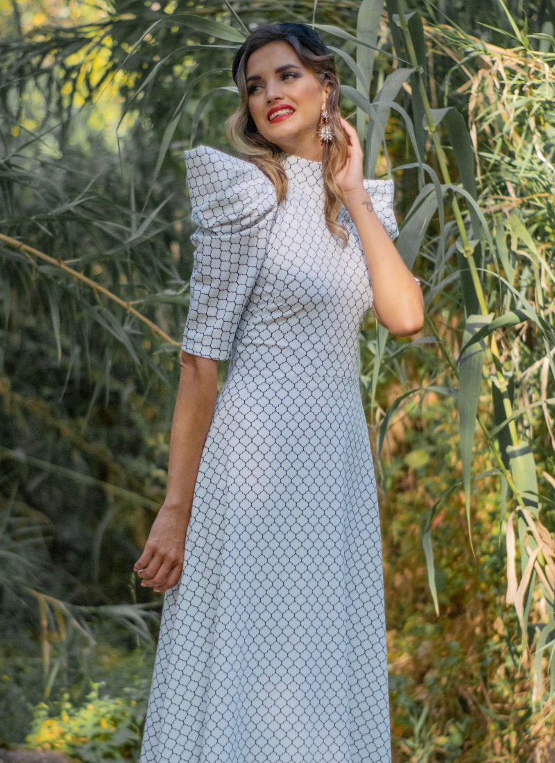 El Vestido Cayetana Blanco es un vestido de corte midi con vuelo, confeccionado en tejido estampado con fondo blanco y negro, es muy fluido y comodo, presenta preciosas mangas en pico. Además de bonito es un vestido muy cómodo gracias a su tejido de calidad, algo muy importante a tener en cuenta cuando vas a comprar la prenda que te va a acompañar en los días más especiales, que además de hacer que te sientas guapa y única, tiene que hacer que vayas cómoda durante horas.
