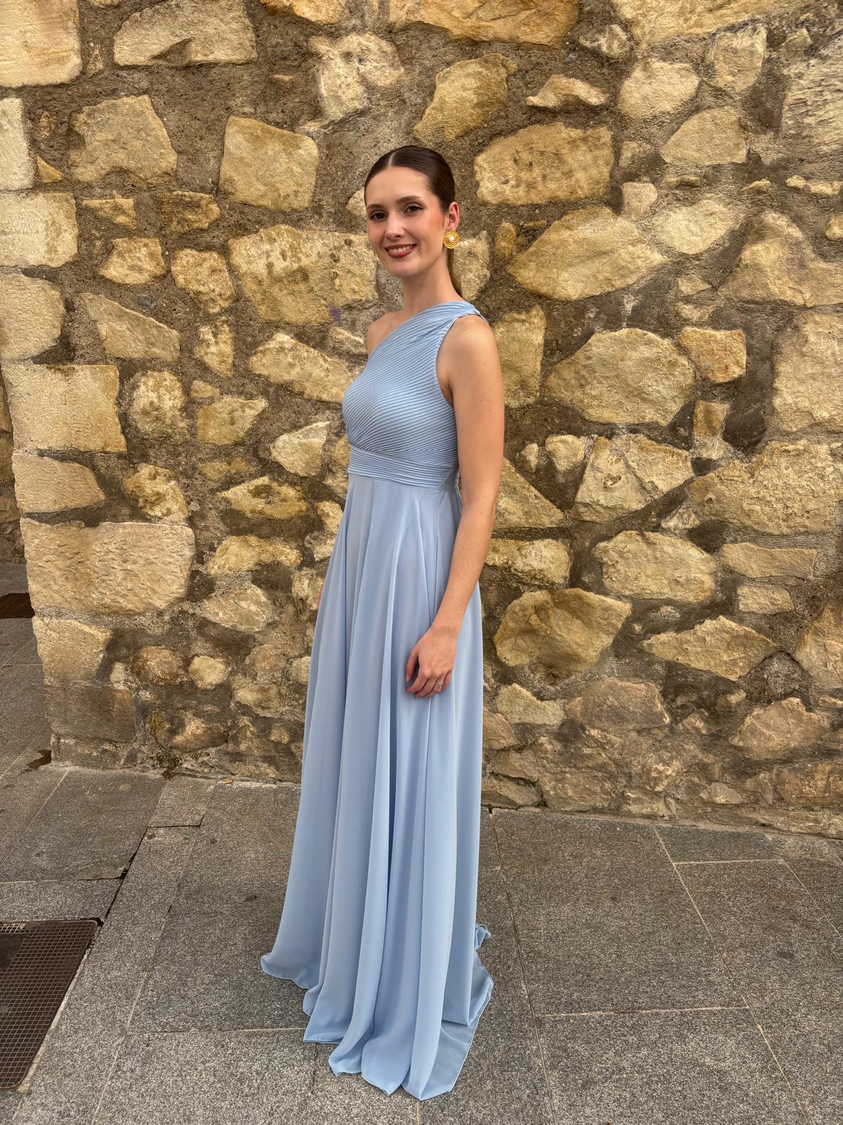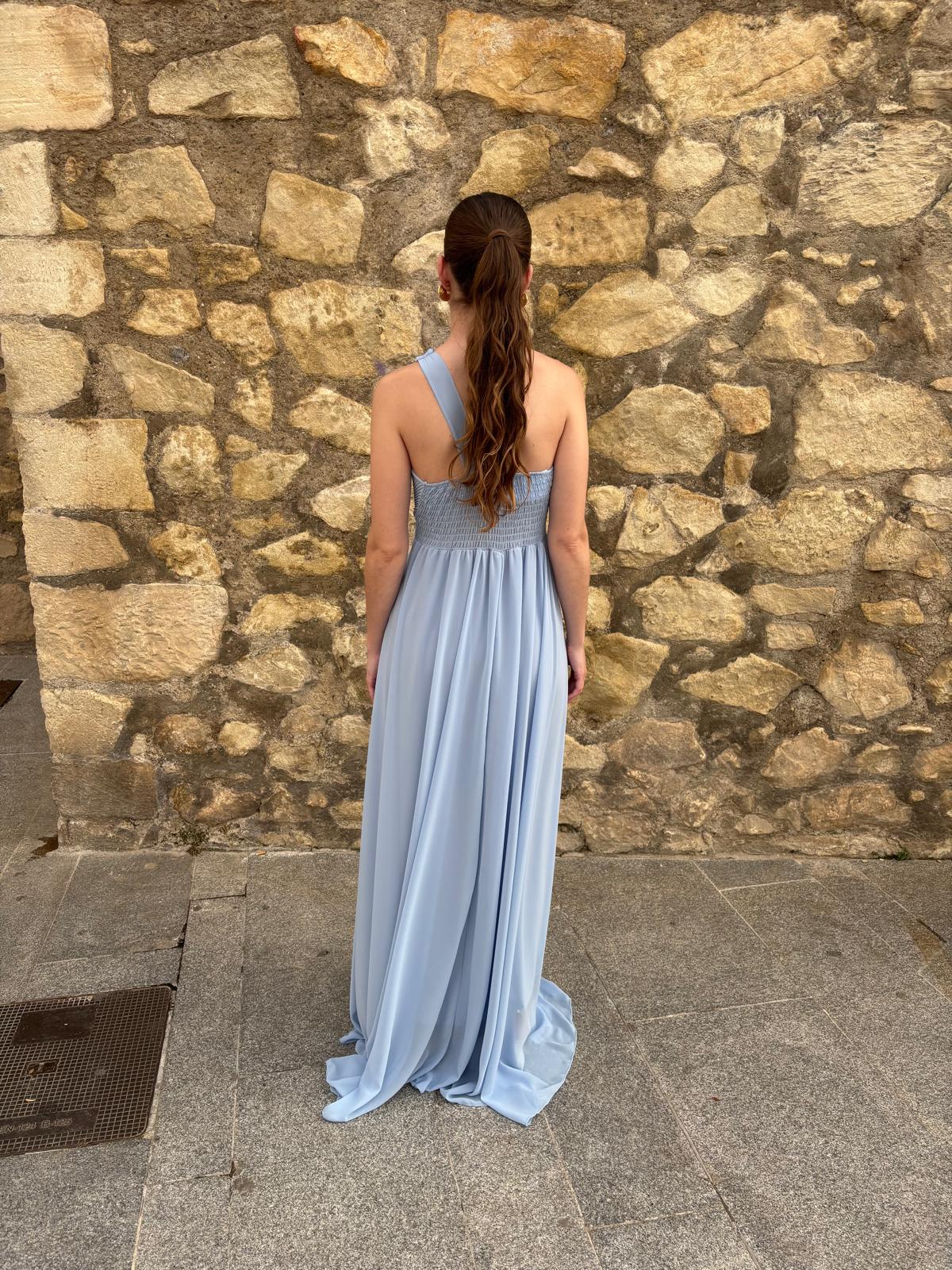 Vestido largo de gasa, asimétrico.